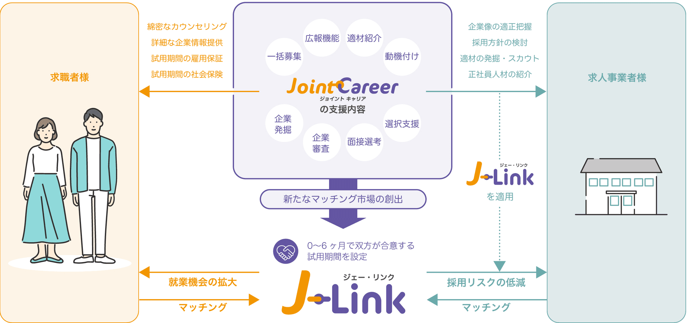 Joint Careerでは、介護・看護・保育関連の人材採用を行う企業・事業者のリスクを最適化するために「 J-Linkシステム」を採用しています。