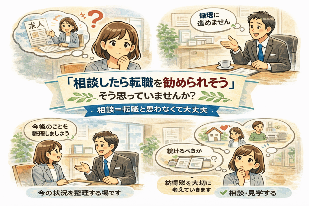 「相談したら、転職を勧められそうで不安」 これは、初めて相談される方からよく聞くお声です。