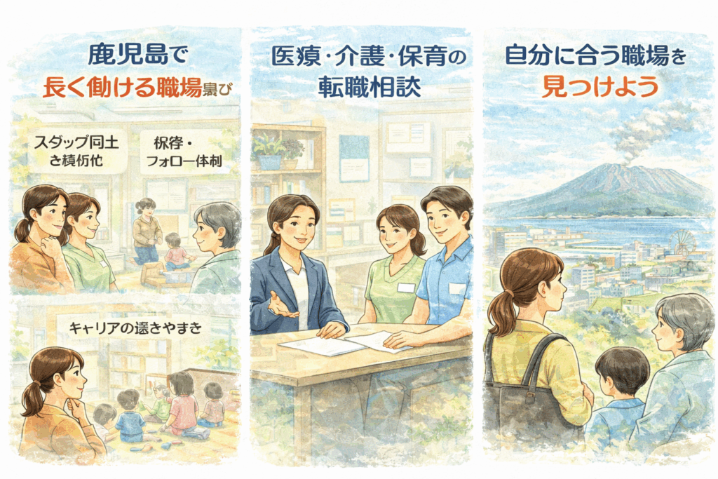 転職はゴールではなく、その後の働き方を左右する大切な選択です。 鹿児島で長く安心して働くためにも、条件だけでなく 「自分に合う環境かどうか」を意識して職場選びを進めていきましょう。