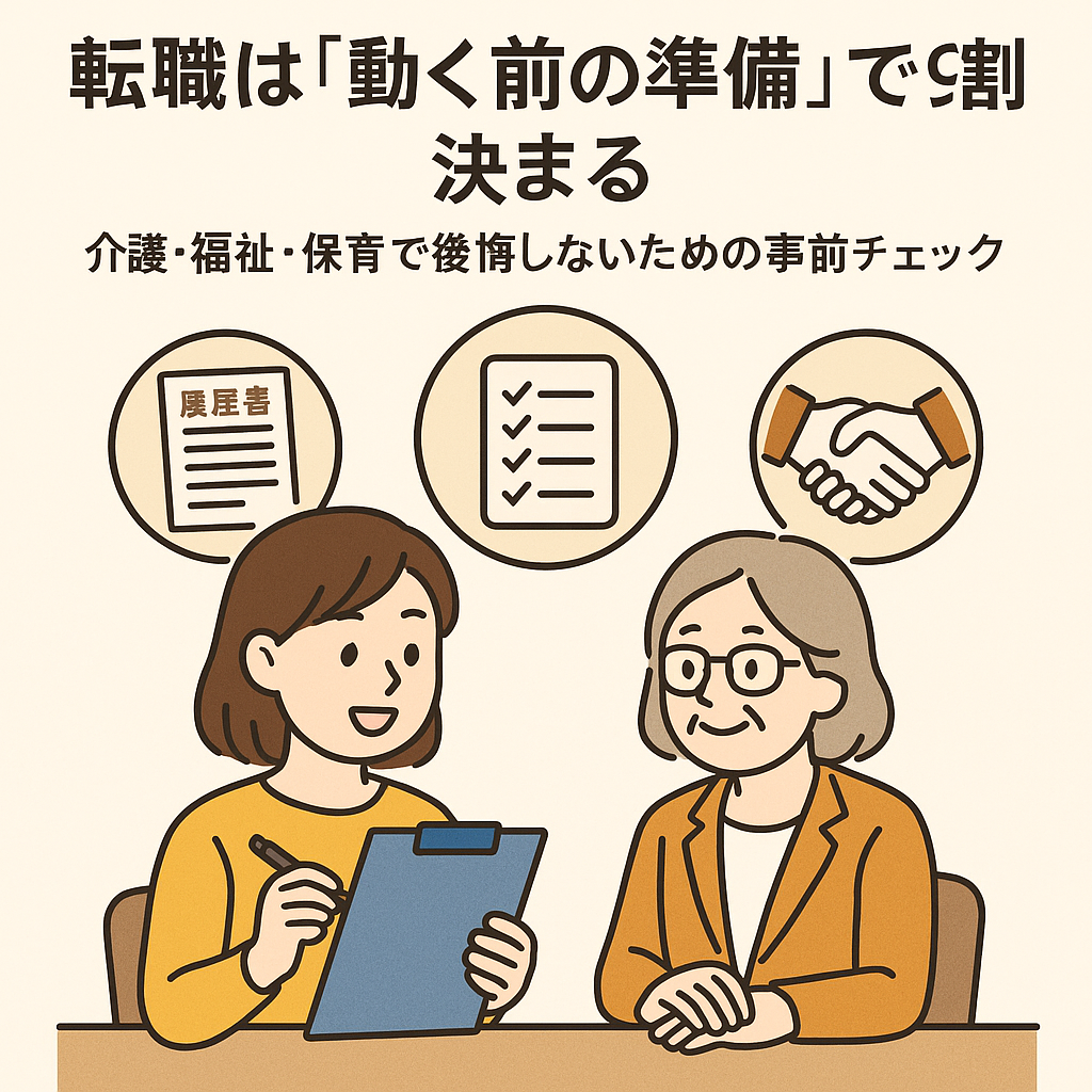 介護・福祉・保育の転職では、「良い求人が出たら考える」という姿勢だと、 気づいた時には募集が締め切られているケースが少なくありません。 本記事では、転職活動を有利に進めるために“応募前に必ずやっておきたい準備”を整理して解説します。