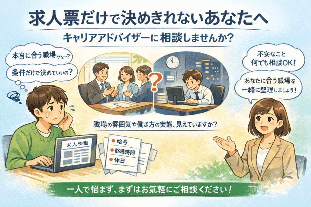求人票を見て迷ったときこそ、キャリアアドバイザーに相談するタイミングです。
