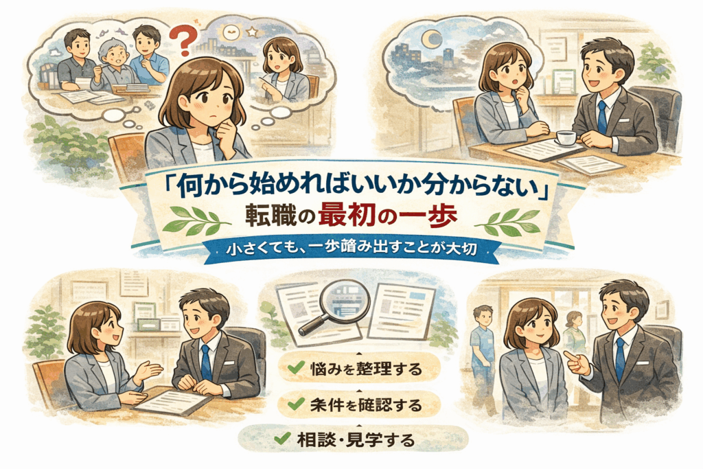 「転職したい気持ちはあるけど、何から始めればいいか分からない」 これは、相談の中でもとても多いお悩みです。